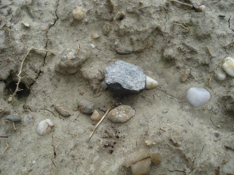 Ein 24 Gramm schweres und etwa 34 Millimeter langes Meteoritenfragment am Fundort in der Nähe von Stubenberg in Niederbayern Quelle: Foto: Dieter Heinlein (Augsburg) (idw)