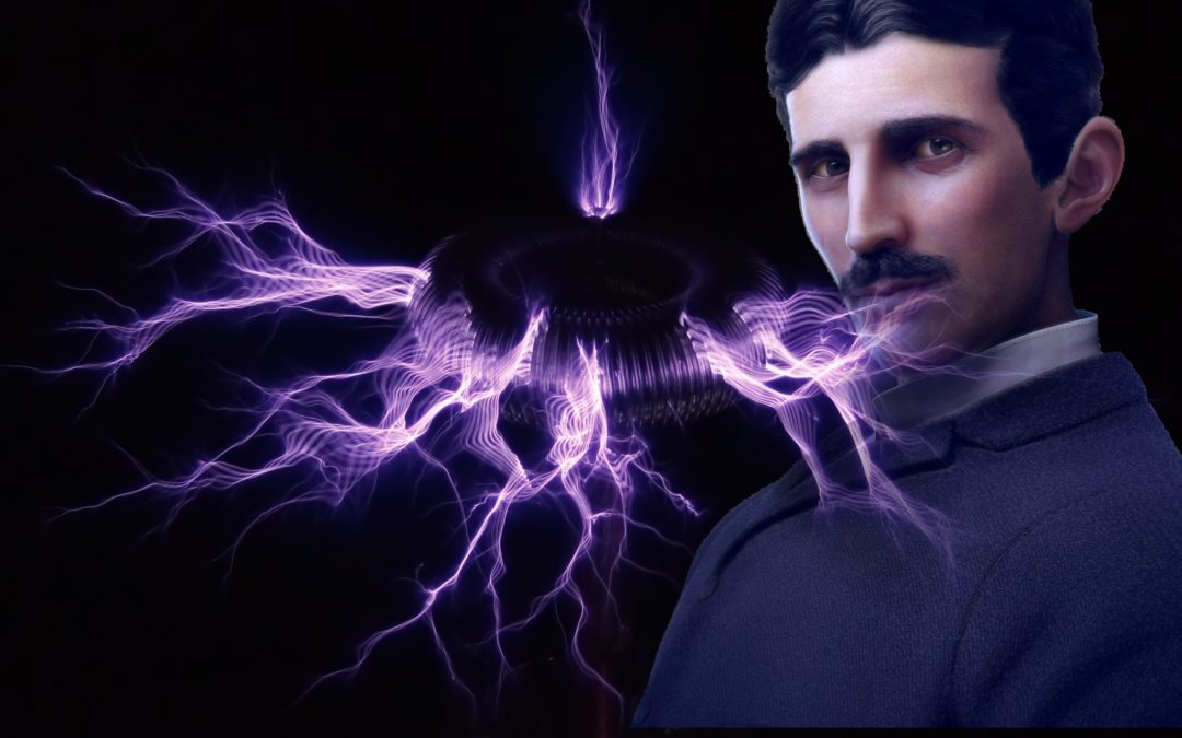 Nikola Tesla und seine berühmten, blitzenden Spulen.