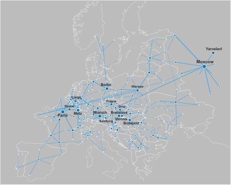 Beispiels eines Netzwerkes anhand des europäischen Straßennetzes Quelle: Areejit Samal (idw)