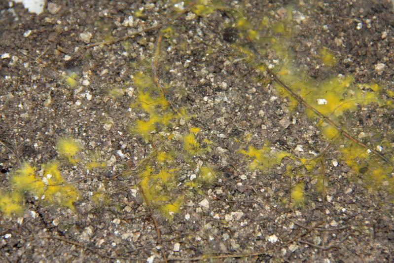Der Safrangelbe Hautrindenpilz (Piloderma croceum) und sein Zusammenleben mit Eichen steht im Mittelpunkt der Untersuchungen des DFG-Forschungsprojekts „TrophinOak“. Quelle: Foto: Dr. Sylvie Herrmann/UFZ (idw)