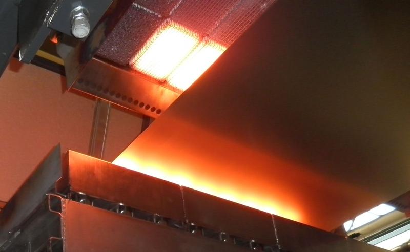 Stahlbandtrocknung nach Vorbehandlung mit Infrarot-Strahlungsporenbrenner ) Quelle: Foto: GoGaS Goch GmbH & Co. KG (idw)