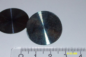 Vorne die der Calziumphosphatlösung ausgesetzte Projektilscheibe, hinten eine unbehandelte Scheibe im Vergleich. FZR