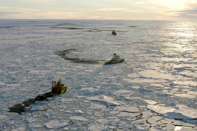 Die drei Eisbrecher in der Nähe des Nordpols. Foto: M. Jakobsson, IODP