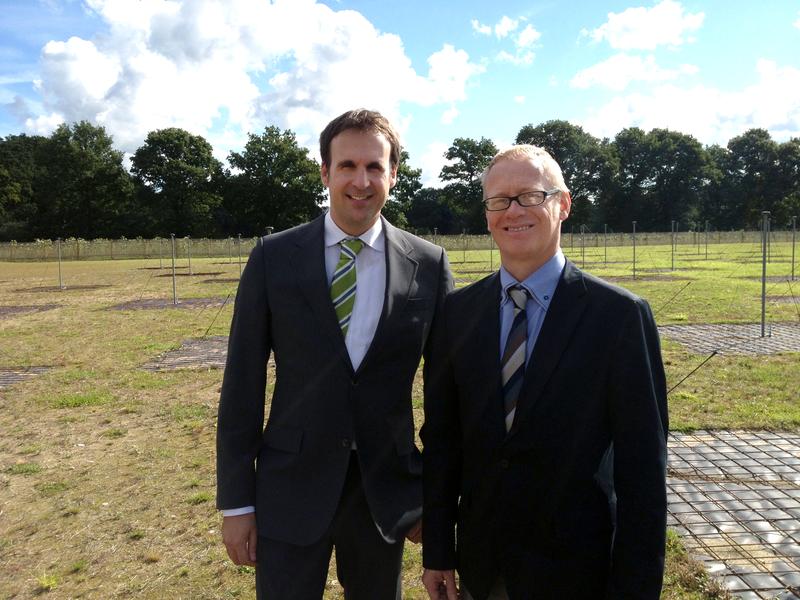 Die Professoren Dr. Marcus Brüggen und Dr. Dominik Schwarz (v.l.) freuen sich, dass der Betrieb in Norderstedt startet. Quelle: Foto: Universität Bielefeld (idw)