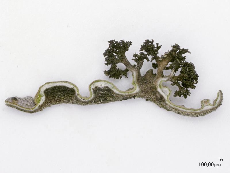 Lebensgemeinschaft aus Alge (obere grüne Schicht) und Pilz - die Flechte Lasallia Pustulata Quelle: Copyright: Francesco Dal Grande (idw)