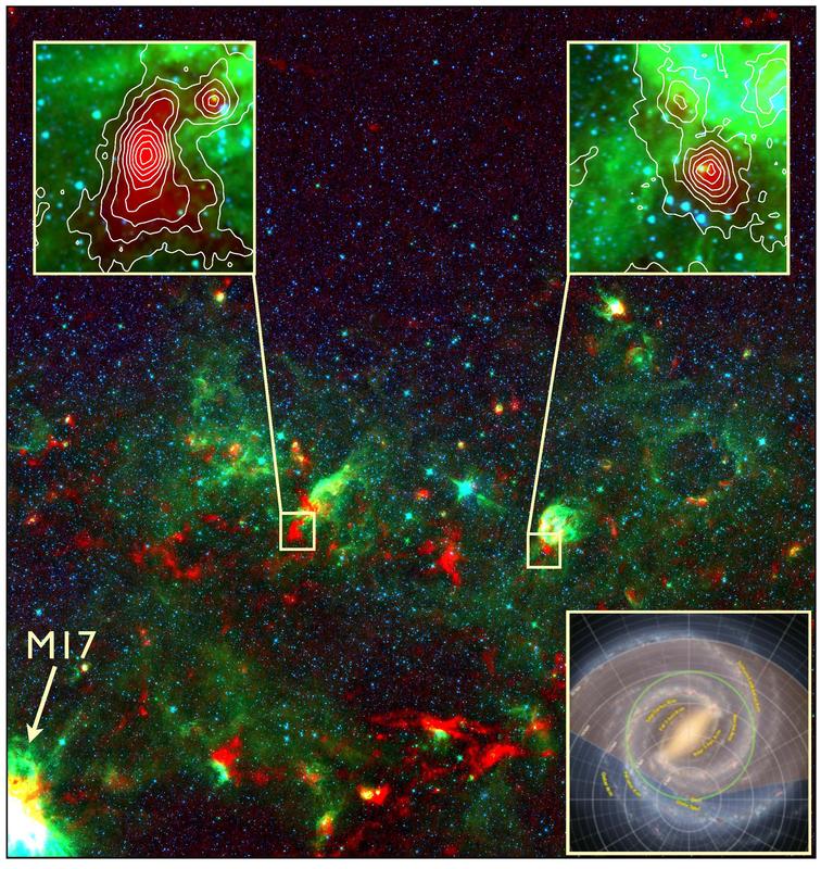 Teilbereich von ATLASGAL in Richtung des Sternbilds Schütze (Sagittarius). Quelle: ATLASGAL-Team (idw)