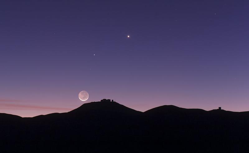 Mondsichel mit aschfahlem Mondlicht über dem Paranal-Observatorium der ESO Quelle: Bild: ESO/B. Tafreshi/TWAN (twanight.org) (idw)