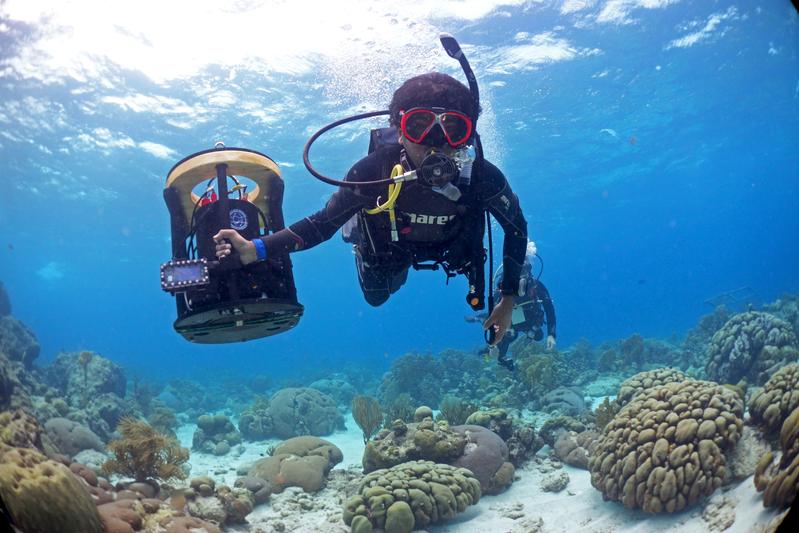 Der HyperDiver kam in der südlichen Karibik, den Marianen im Pazifik und in Papua Neu-Guinea zum Einsatz. Mit dem HyperDiver-System kann ein Taucher bis zu 40 Quadratmeter Riff jede Minute Quelle: Benjamin Mueller, Carmabi (idw)