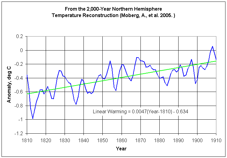 Grafik (3): Die Temperaturanomalie vor 1910 nach Moberg et al. 2005