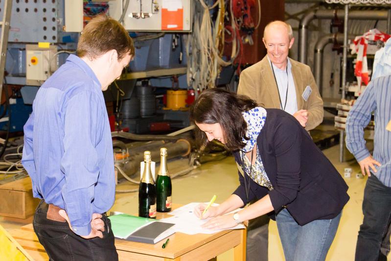 Vertragsunterzeichnung am DESY in Hamburg: Dr. Béla Majorovits, Sprecher der MADMAX-Kollaboration, Prof. Dr. Erika Garutti (Universität Hamburg) und Prof. Dr. A Quelle: Foto: M. Grefe/Universität Hamburg (idw)