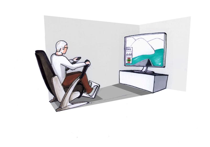 Auf Knopfdruck in der Ruderregatta: Der GEWOS-Sessel hält Senioren auch in den eigenen vier Wänden fit. Quelle: © Fraunhofer IIS (idw)