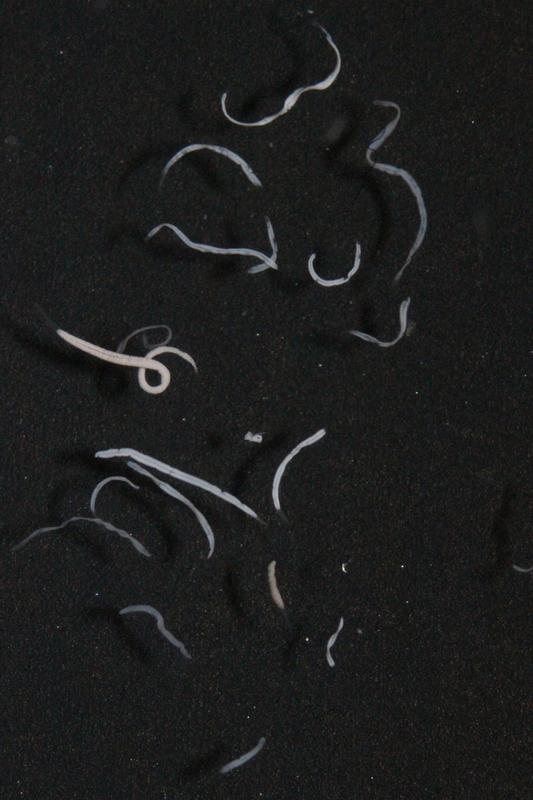 Mehrere Wimperntierchen aus Mittelmeer unter dem Mikroskop. Der Schwefel in den symbiontischen Bakterien reflektiert das Licht und sorgt für die helle Farbe. Quelle: Oliver Jäckle, MPI Bremen (idw)