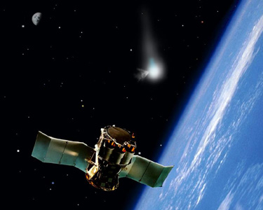 Kometenjäger: Der NASA-Satellit für "Astronomie bei Submillimeter Wellenlaengen" beherbergt ein kleines Radioteleskop, mit dem sich Wasserdampf detektieren lässt. Das macht SWAS zum idealen Observatorum für die Jagd nach Kometen. NASA und B. Scott Kahler, David Aguilar (Harvard-Smithsonian Center for Astrophysics)