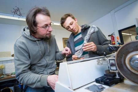 Den Dinosauriern auf der Spur: Der Wissenschaftler Dr. Koen Stein (rechts) und der Präparator Olaf D ... Bild: Volker Lannert/Uni Bonn
