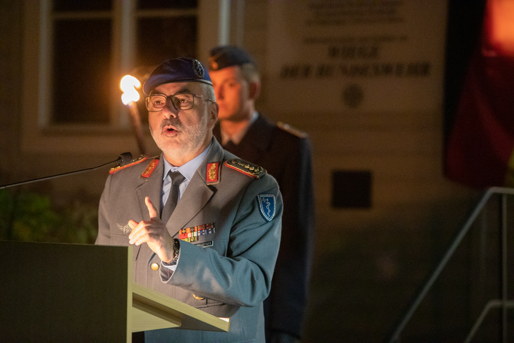 Der Inspekteur des Sanitätsdienstes der Bundeswehr, Generaloberstabsarzt Dr. Ulrich Baumgärtner, eröffnete die akademische Feierstunde. / Weiterer Text über ots und www.presseportal.de/nr/122038 / Die Verwendung dieses Bildes für redaktionelle Zwecke ist unter Beachtung aller mitgeteilten Nutzungsbedingungen zulässig und dann auch honorarfrei. Veröffentlichung ausschließlich mit Bildrechte-Hinweis. Bildrechte: Sanitätsdienst der Bundeswehr Fotograf: Markus Dittrich