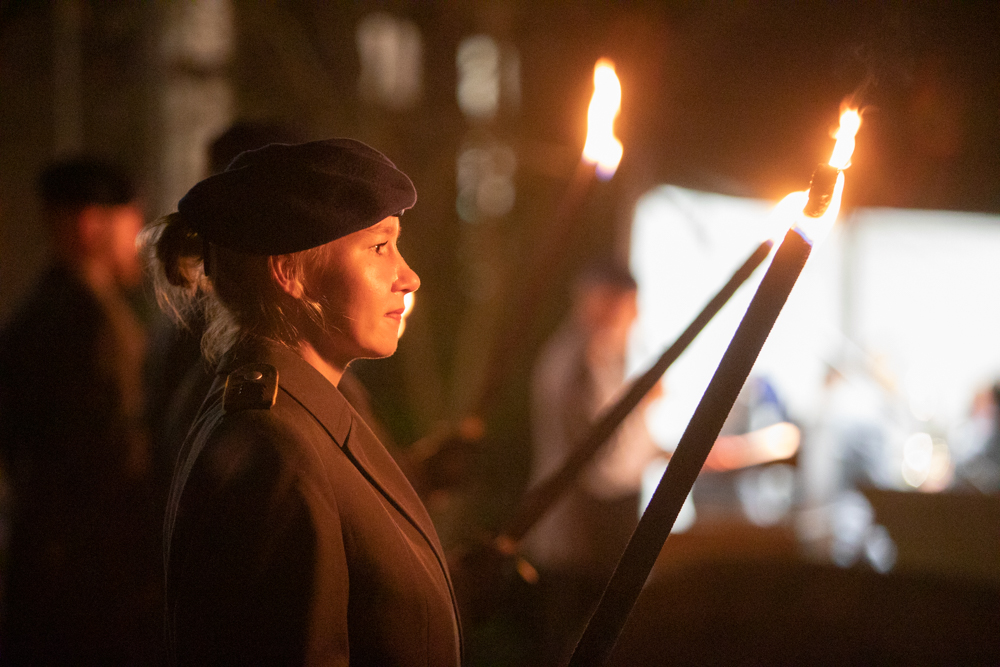 Auszeichung zum Ort der Demokratiegeschichte im Schein der Fackeln. / Weiterer Text über ots und www.presseportal.de/nr/122038 / Die Verwendung dieses Bildes für redaktionelle Zwecke ist unter Beachtung aller mitgeteilten Nutzungsbedingungen zulässig und dann auch honorarfrei. Veröffentlichung ausschließlich mit Bildrechte-Hinweis. Bildrechte: Sanitätsdienst der Bundeswehr Fotograf: Markus Dittrich
