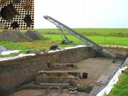 Grabungsstätte und zu untersuchendes Scherbenmaterial (Insert). Foto: Dr. Ralf Wöstmann, FTM