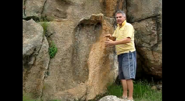 Michael Tellinger präsentiert den versteinerten Fußabdruck Bild: youtube.com