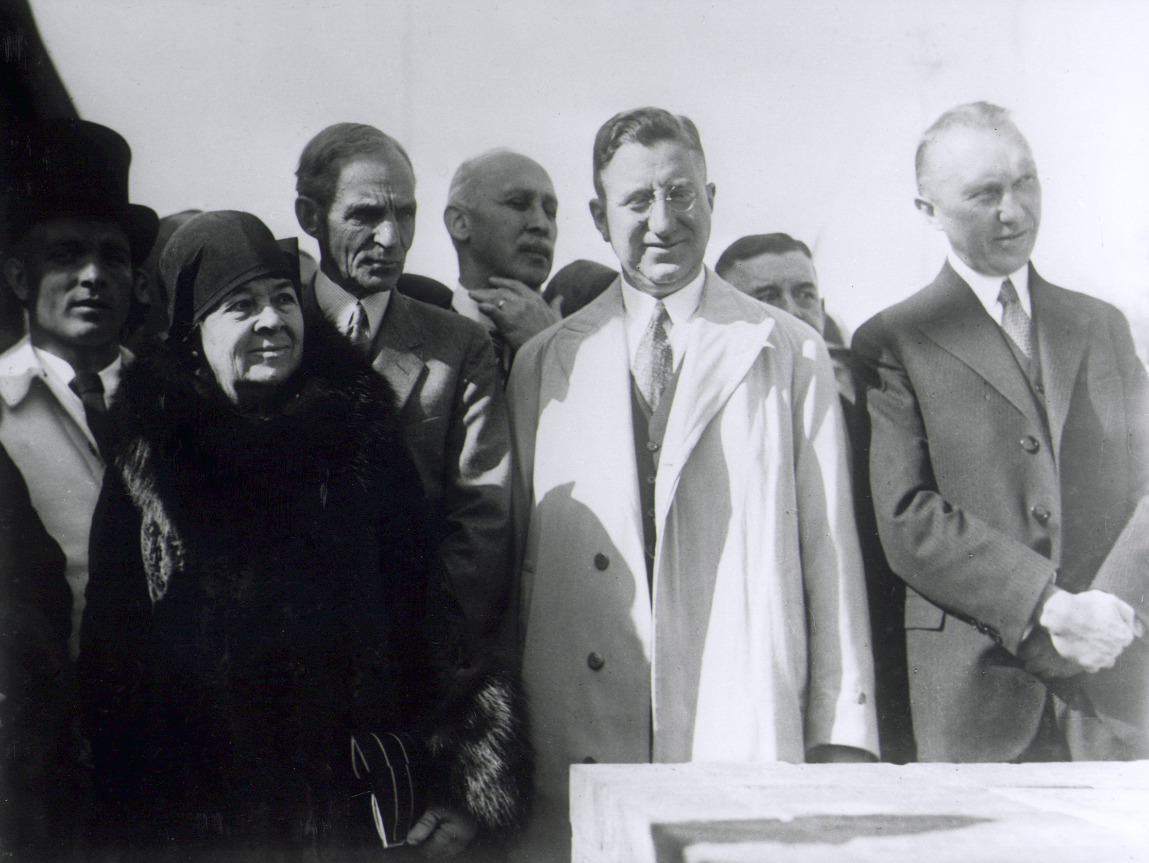 Ford-Werkjubiläum: Vor 90 Jahren beginnt Kölner Erfolgsgeschichte mit der Grundsteinlegung der Ford-Werke/ Ford Werk Köln-Niehl, 02. Oktober 1930: Grundsteinlegung in Anwesenheit von Henry Ford (3. v. links) und Konrad Adenauer (rechts). / Weiterer Text über ots und www.presseportal.de/nr/6955 / Die Verwendung dieses Bildes ist für redaktionelle Zwecke honorarfrei. Veröffentlichung bitte unter Quellenangabe: "obs/Ford-Werke GmbH"