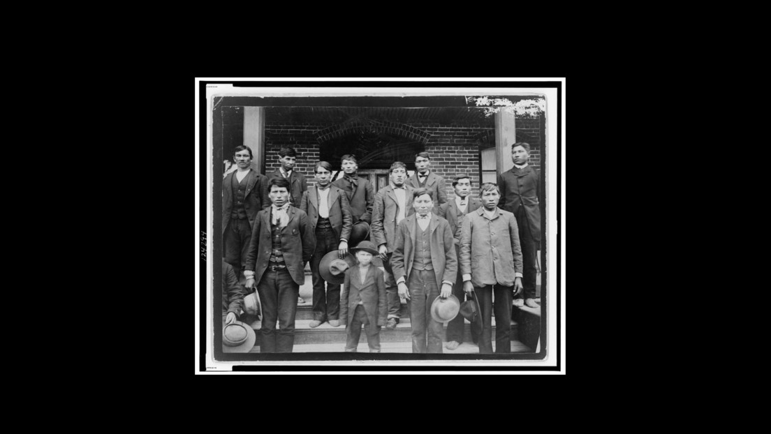 Männer und ein Schüler vor der Carlisle Indian School, ca. 1890 Bild: Library of Congress