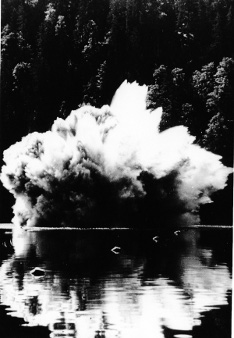 Letzte Sprengungen der Nazis im Tolpitzsee, ©Fischerhütte Tolpitzsee
