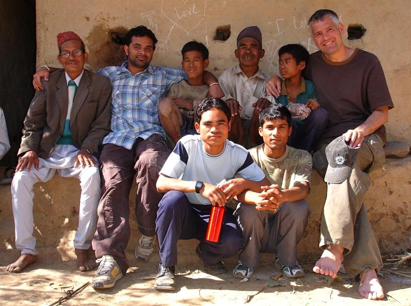 Sprachwissenschaftler George van Driem (rechts) mit dem nepalesischen Genetiker Aashish Jha (zweiter von links) und seinem Assistenten Surendra Raj Dhakal (unten rechts) bei den Kusunda in Nepal. Bild: zvg