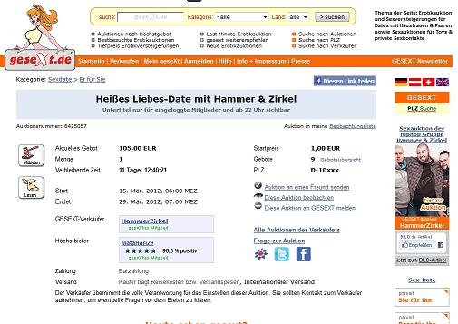Die gesext-Auktion der Hip-Hop-Kombo namens "Hammer & Zirkel". Bild: Screenshot