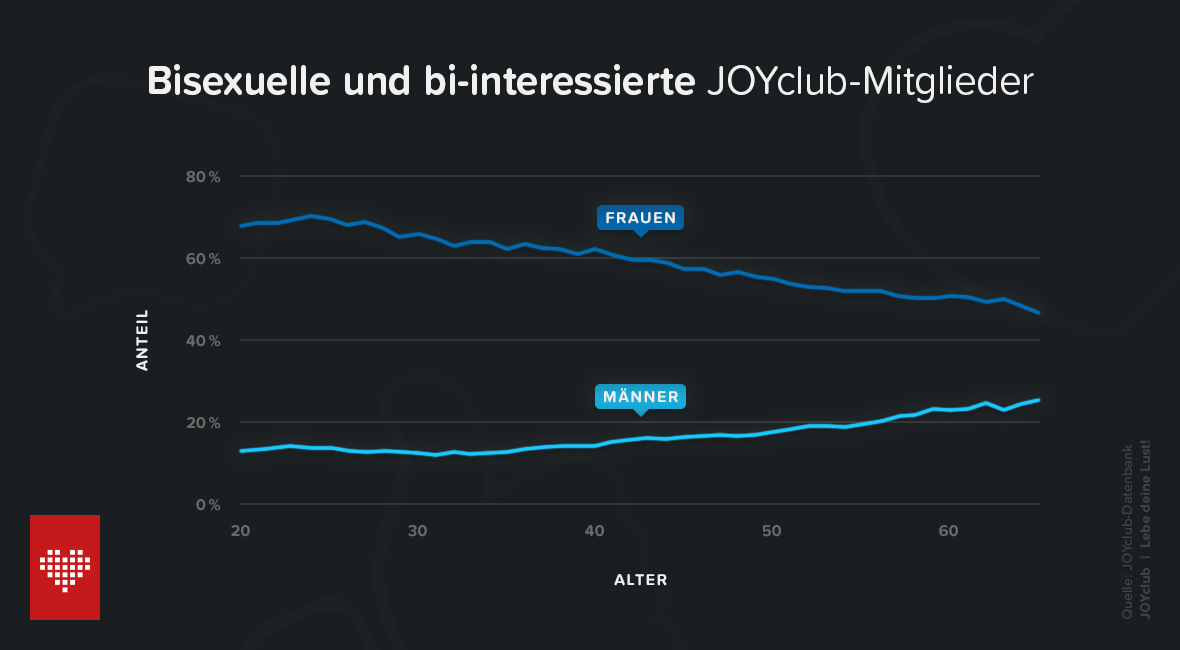 Anteil der bisexuellen und bi-interessierten JOYclub-Mitglieder nach Geschlecht und Alter differenziert.Bild: JOYclub Fotograf: JOYclub