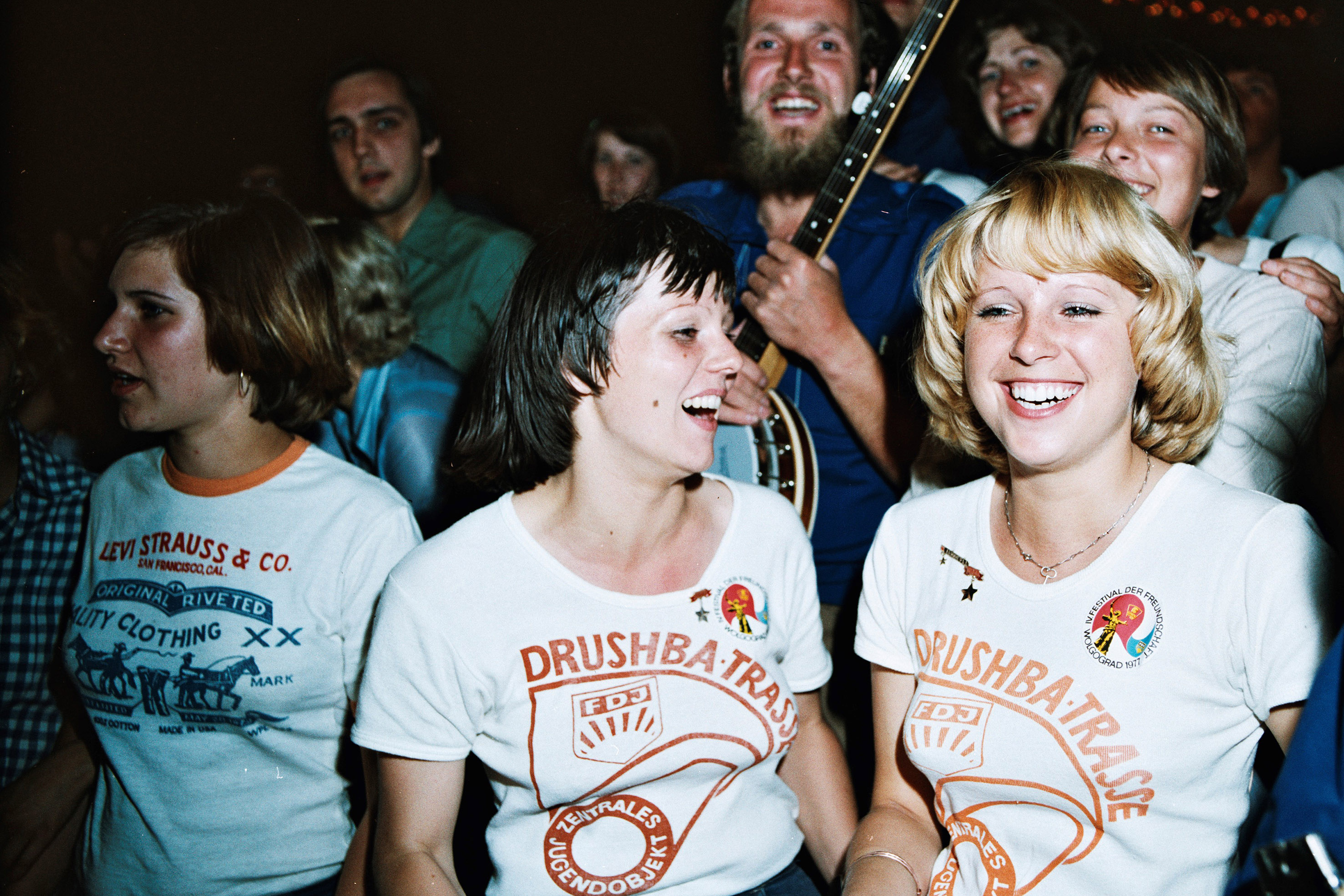 Arbeiterinnen mit "Drushba-Trasse"-T-Shirts beim Feiern, 1970er, Ukraine Bild: MDR/Thomas Billhardt/Galerie Cam Fotograf: MDR/Thomas Billhardt/Galerie Cam