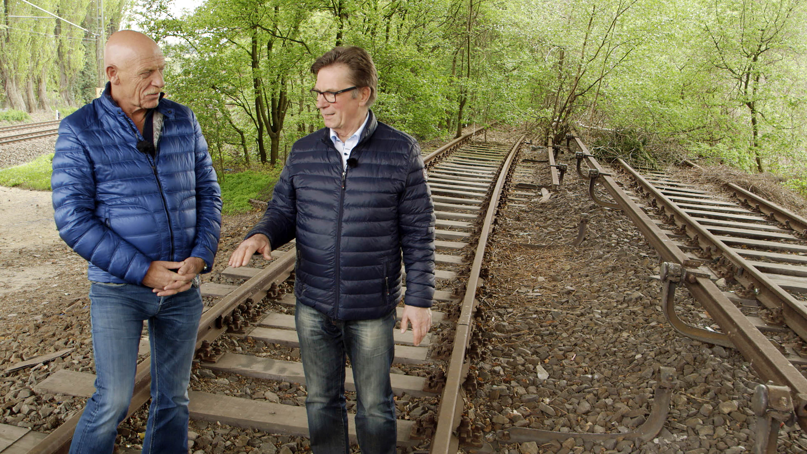 Joe Bausch und Arno Funke bei einem alten Übergabeort in Berlin. Bild: "obs/ZDFinfo/Johann Schmejkal"