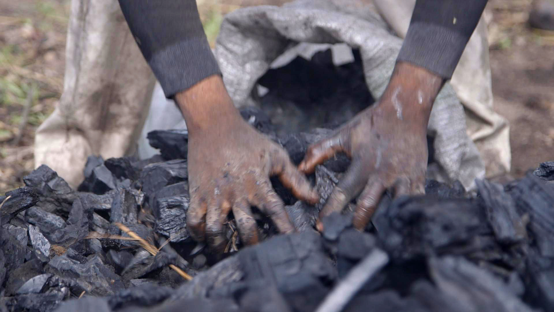 Holzkohle-Herstellung in Nigeria: Das ist Handarbeit. Bild: "obs/ZDF/Jonathan Happ"