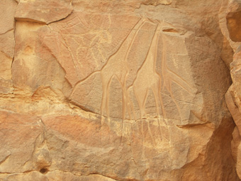 Die Felsbilder in manchen Trockentälern zeigen: In früheren Zeiten lebten hier Krokodile, Giraffen, Nilpferde und Elefanten. Die Landschaft hat sich seither dramatisch gewandelt. Bild: ZDF und Dr. Tilman Lenssen-Erz