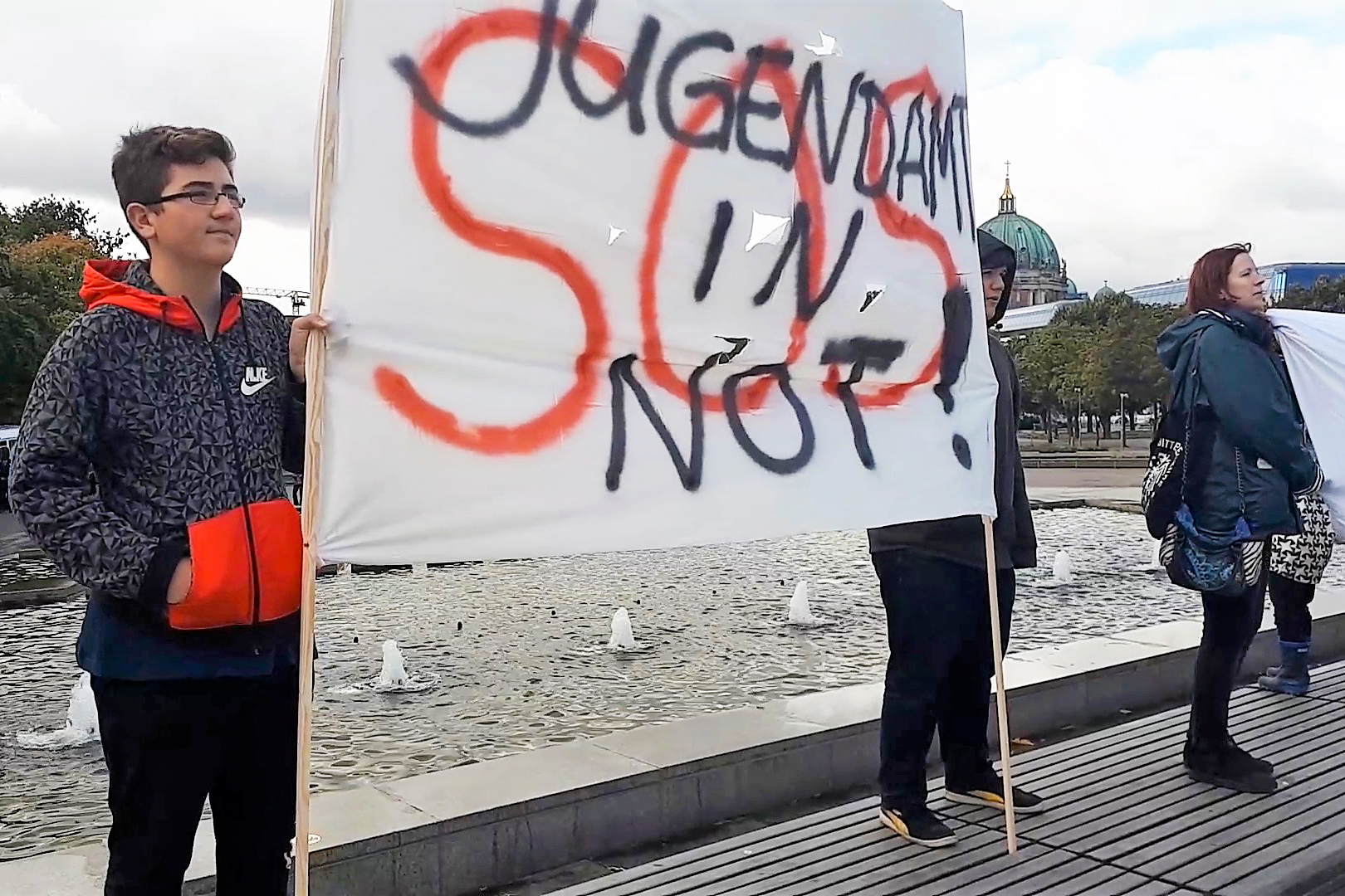 Jugendamtsmitarbeiter demonstrieren in Berlin für bessere Arbeitsbedingungen. Bild: "obs/ZDF/Detlef Schwarzer"