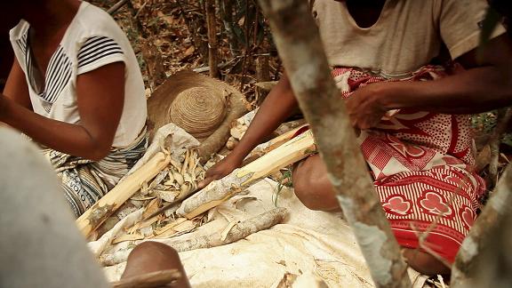Hier wird die Rinde vom Zimtbaum abgeschält, die dann getrocknet und in Säcken verpackt exportiert wird. Bild: ZDF und Michael Höft
