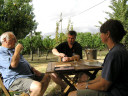 Weinprobe auf Neuseeland. Winzer Kai Schubert hat ein ehrgeiziges Projekt: Aus einer ehemaligen 40 Hektar großen Schafweide einen florierenden Weinbetrieb aufzubauen. Mit Lebensgefährtin Marion Deimling und einem Nachbarn verkostet er die ersten Proben. Bild: ZDF und Ralf Dilger