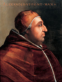 Alexander VI. (eigentlich Roderic Llançol i de Borja, italienisch Borgia; * 1. Januar 1431 in Xàtiva bei València; † 18. August 1503 in Rom) war von 1492 bis 1503 Papst.