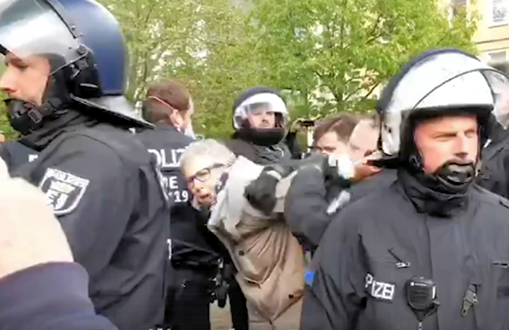 Ein Rentner wird von der Polizei überwältigt weil er sich für das Grundgesetz der BRD einsetzt (Symbolbild)