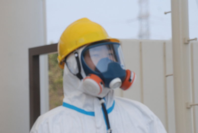 Fukushima: Mitarbeiter am Kraftwerkseingang (13. April 2011)