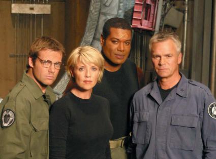 v.li: Michael Shanks als Daniel, Amanda Tapping als Carter, Christopher Judge als Teal'c und Richard Dean Anderson als O'Neill.