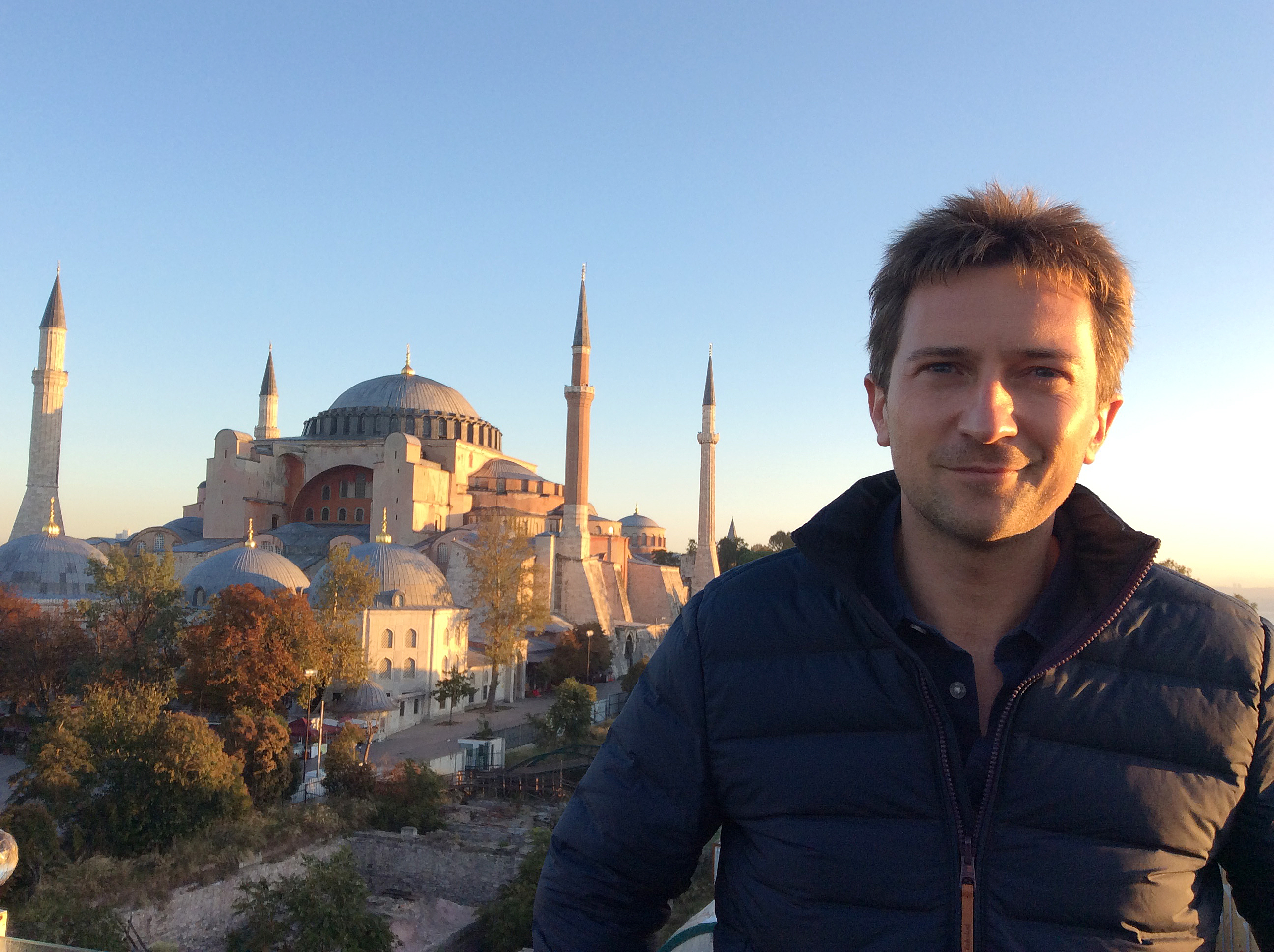 Michael Scott vor der Hagia Sophia in Istanbul. Bild: "obs/ZDFinfo/Renny Bartlett"