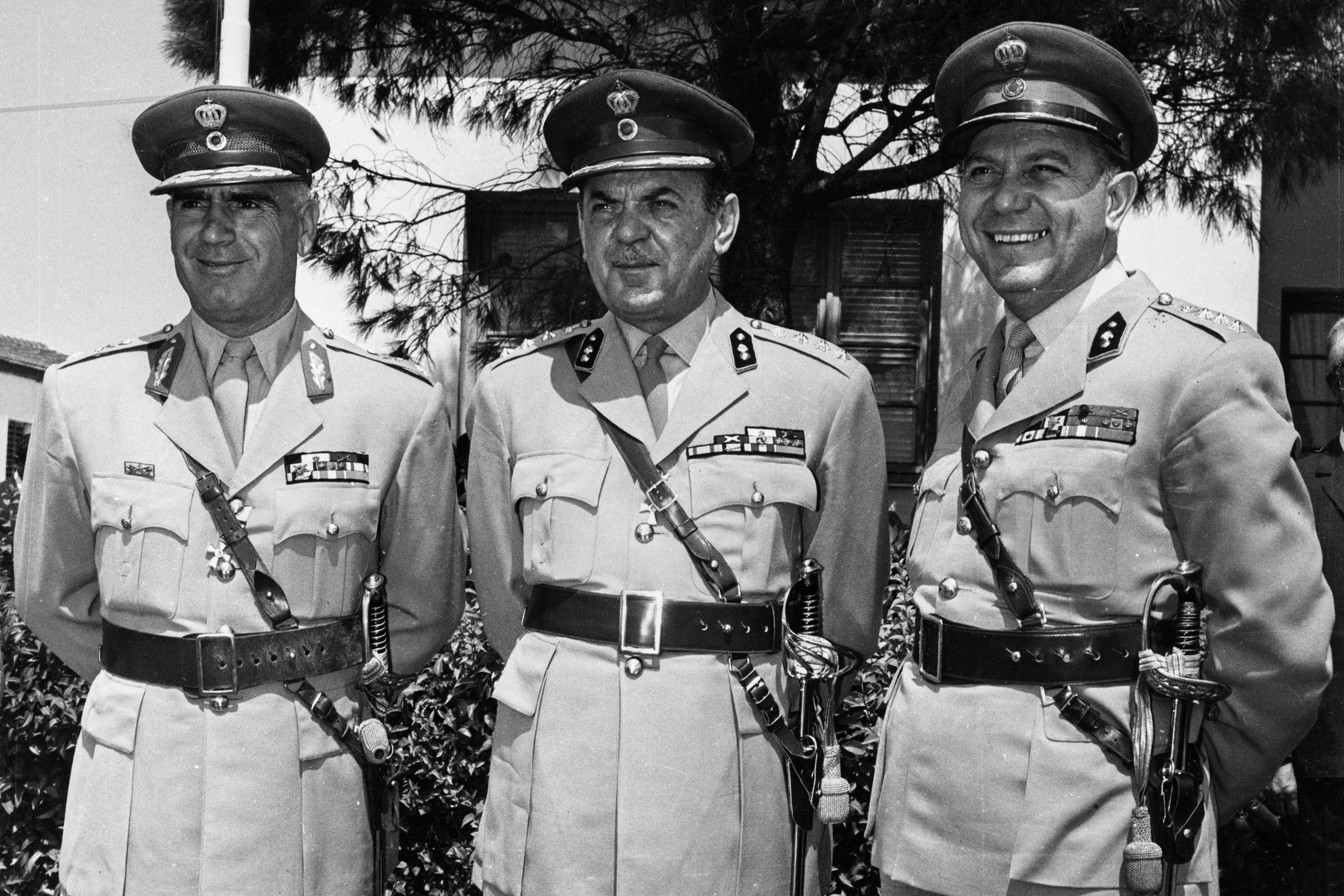 Oberst Georgios Papadopoulos (M.), Brigadegeneral Stylianos Pattakos (l.) und Oberst Nikolaos Makarezos (r.) Bild: ZDF/Keystone/Hulton Archive/Getty Images Fotograf: ZDFinfo