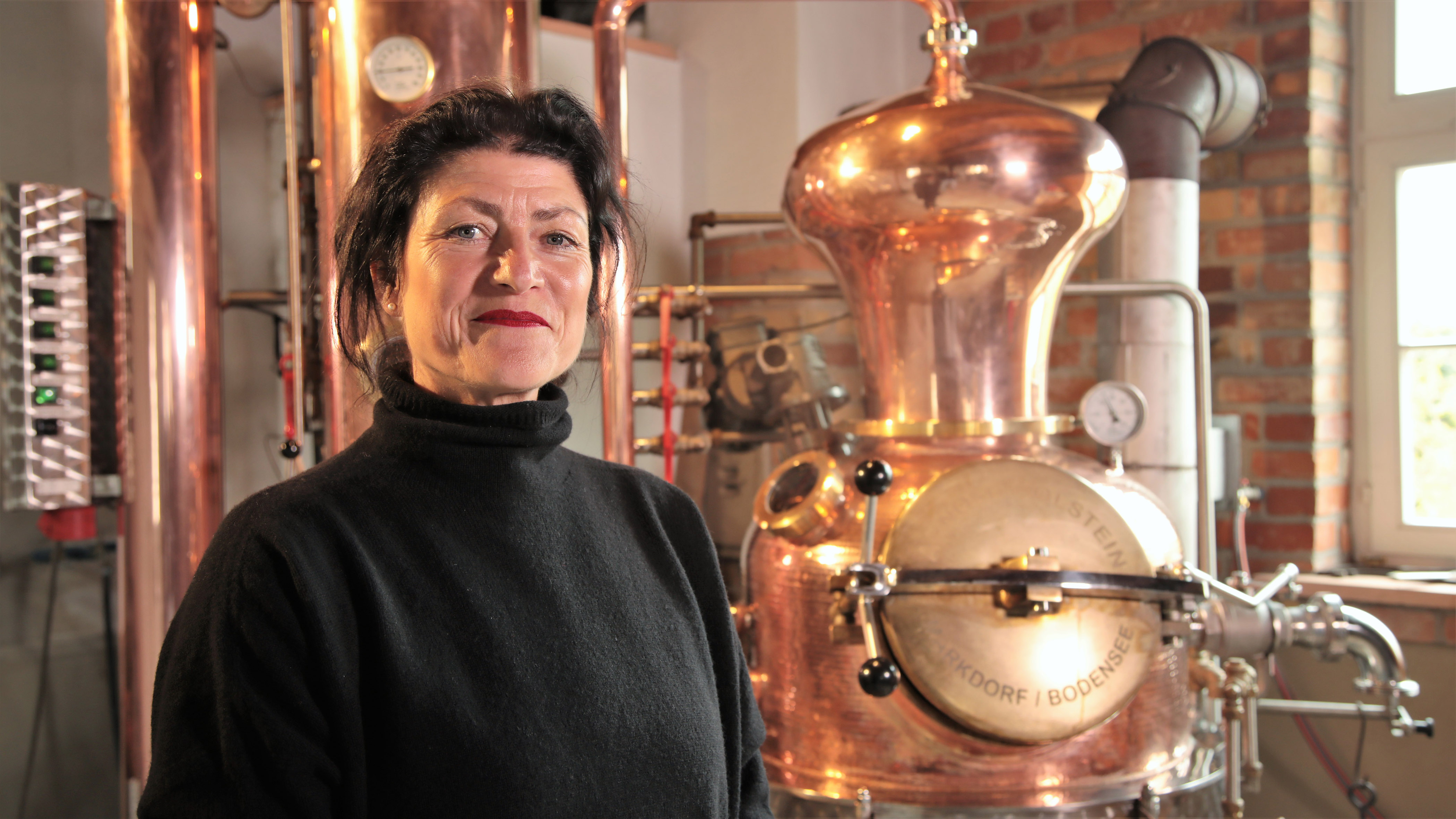 Ihr Gin trägt ihren Namen: Iris Krader ist eine der wenigen Brennerinnen im Schwarzwald. Bild: ZDF Fotograf: ZDF/Ralph Zeilinger