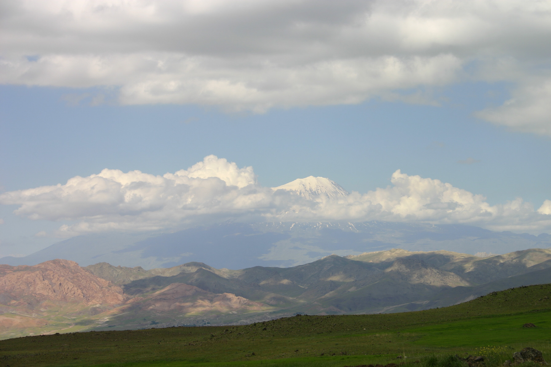 Der schnee- und gletscherbedeckte Berg Ararat im Osten der Türkei. Bis heute vermuten viele Menschen, dass auf ihm Reste der gestrandeten Arche Noah zu finden sind.