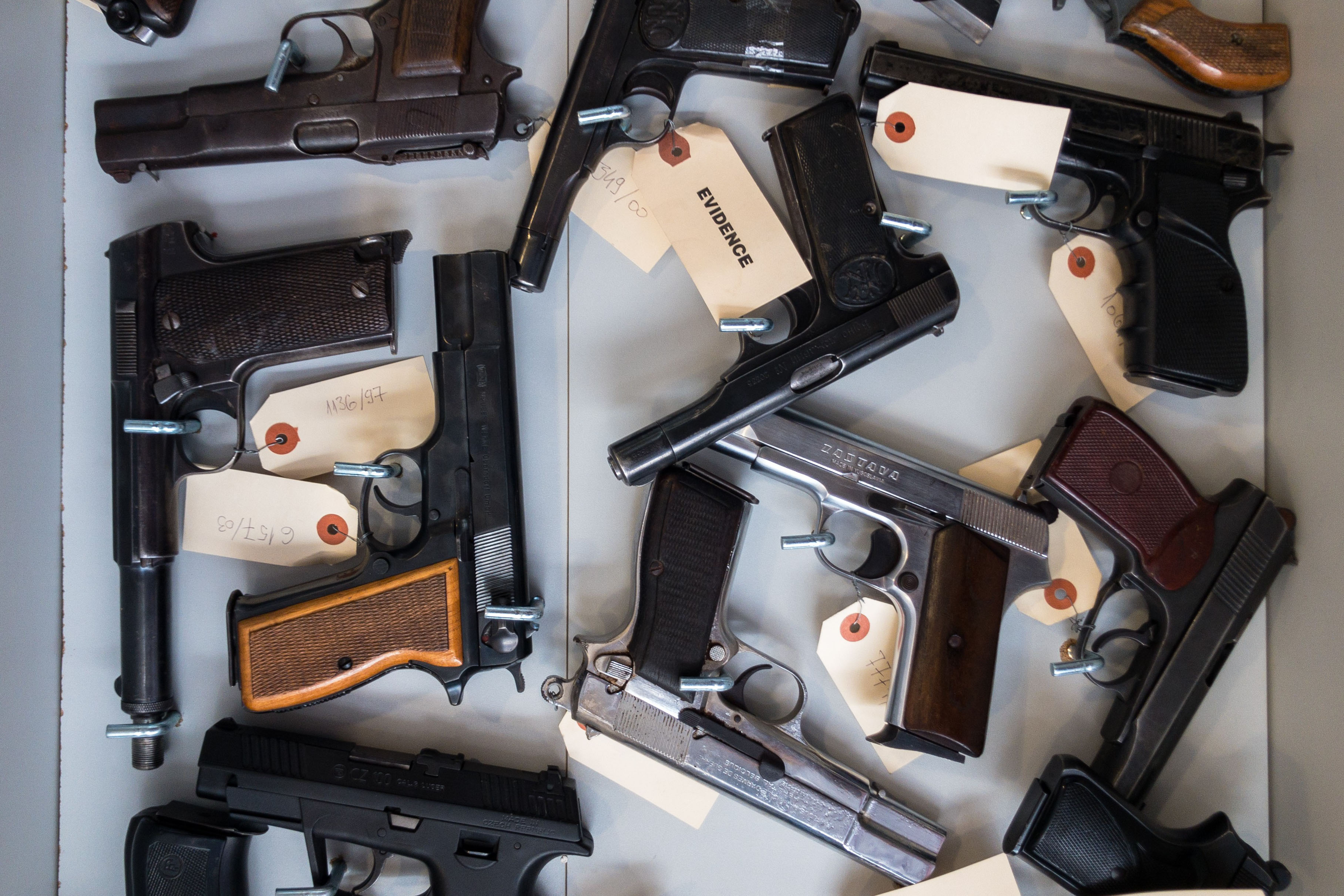 Tatwaffen in der Forensik der bosnischen Polizei in Sarajevo. Bild: ZDF Fotograf: ZDF/Jasmin Agovic