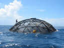 Die Fischzucht der Zukunft soll sich in. freischwimmenden Kugelkäfigen abspielen. Eine von vielen Fragen dabei ist, wie sich die Käfige von Parasiten reinigen lassen. Bild: ZDF und Stefan Schneider