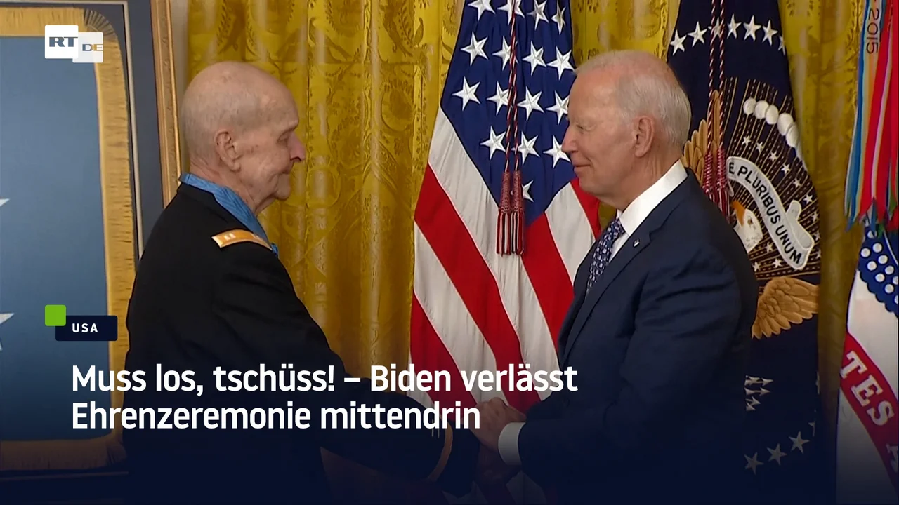 Zurück zu Muss los, tschüss! – Biden verlässt Ehrenzeremonie mittendrin