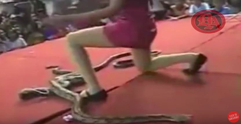 Bild: Screenshot Youtube Video "Begini Aksi Pedangdut Irma Bule Sebelum Di Patuk Ular "