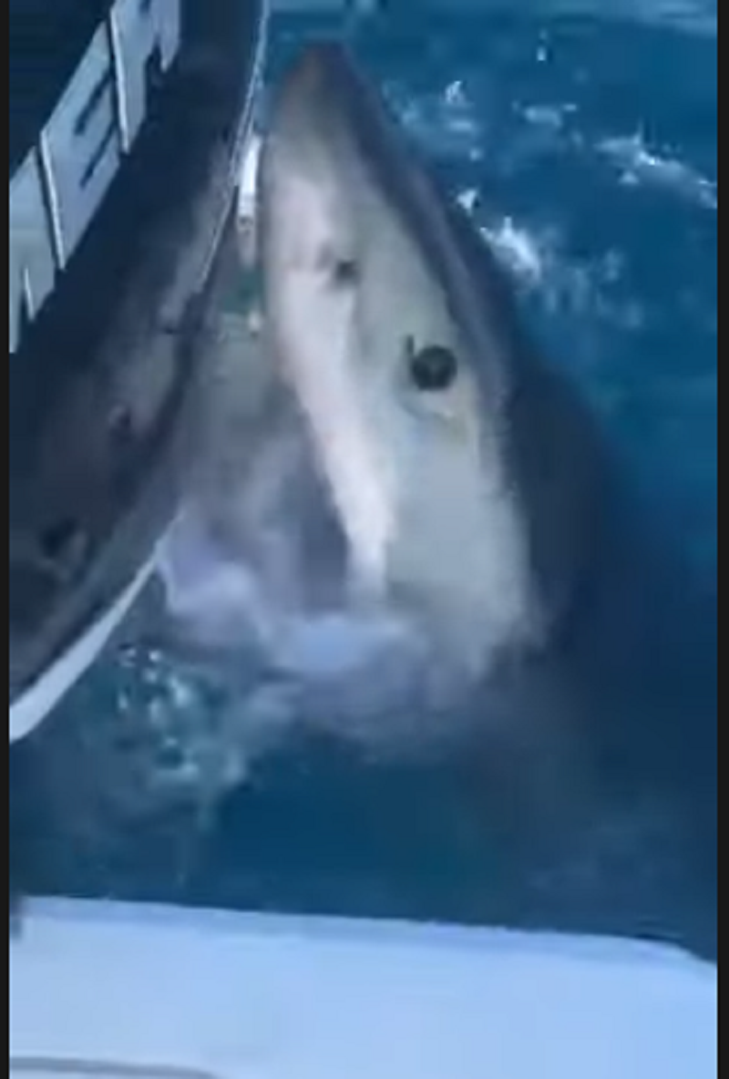 Horror-Video: Weißer Hai verbeißt sich in Motor eines Bootes