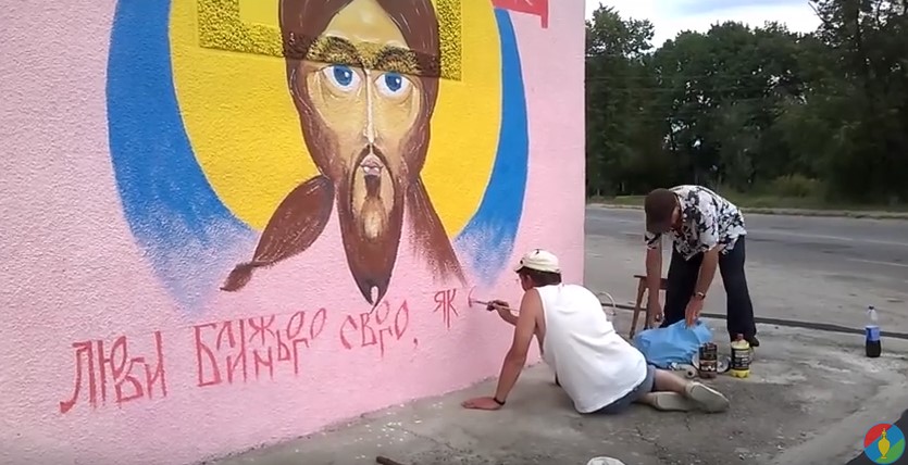 Bild: Screenshot Youtube Video "У Баранівці на стіні колишнього поста ДАІ з'явився образ Ісуса Христа"