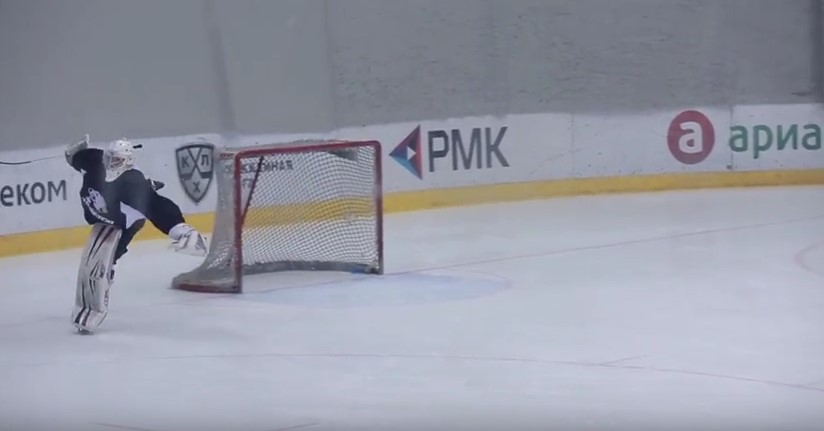 Bild: Screenshot Youtube Video "Вратарь «Трактора» станцевал на матче в поддержку Чемпионата России по Фигурному Катанию"